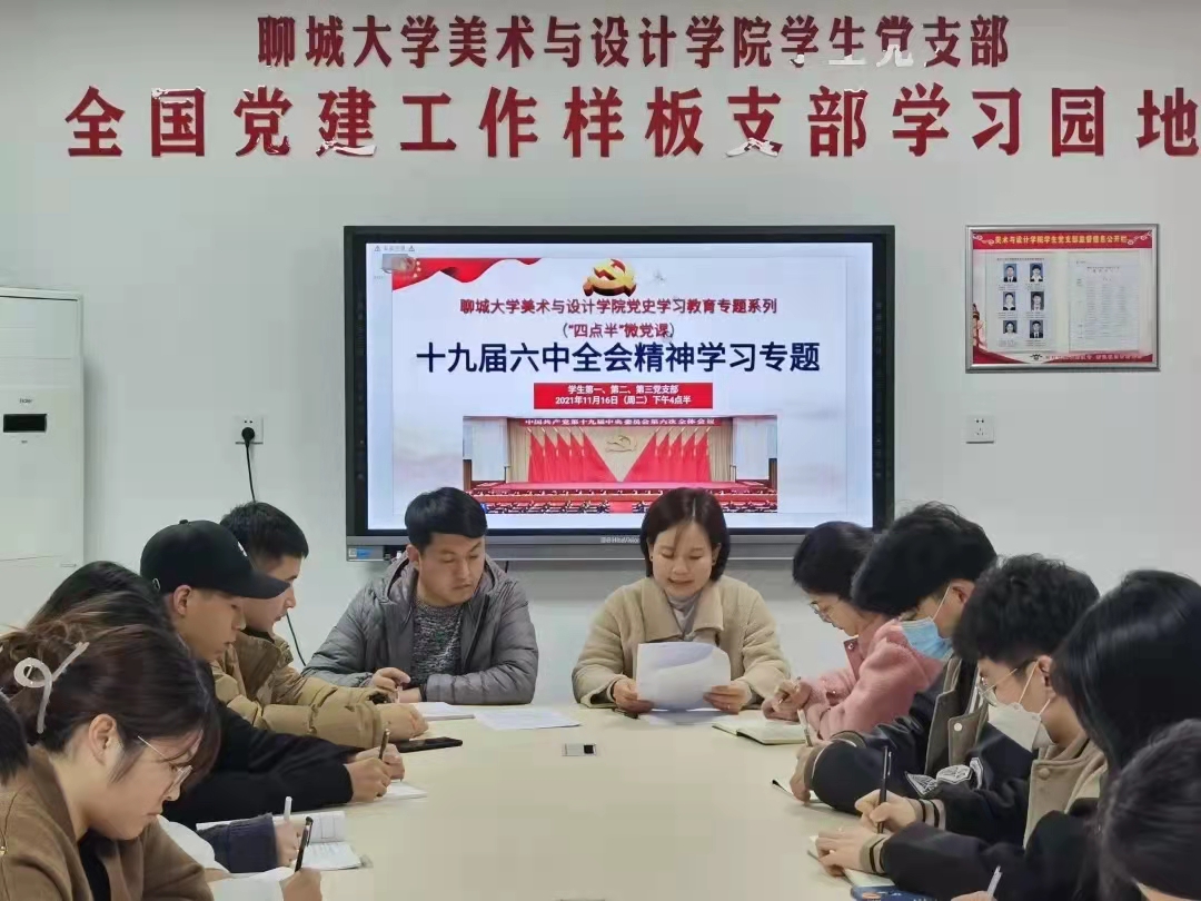 11月16日下午,四虎 学生第一、二、三党支部于学苑五号楼二楼会议室召开党的十九届六中全会精神学习专题会议,集中学习习近平总书记在党的十九届六中全会上的重要讲话和全会精神,党支部全体委员及部分党员代表近三十人参加专题学习。会议由学生第一党支部书记相萌萌主持并带领与会人员进行了学习。