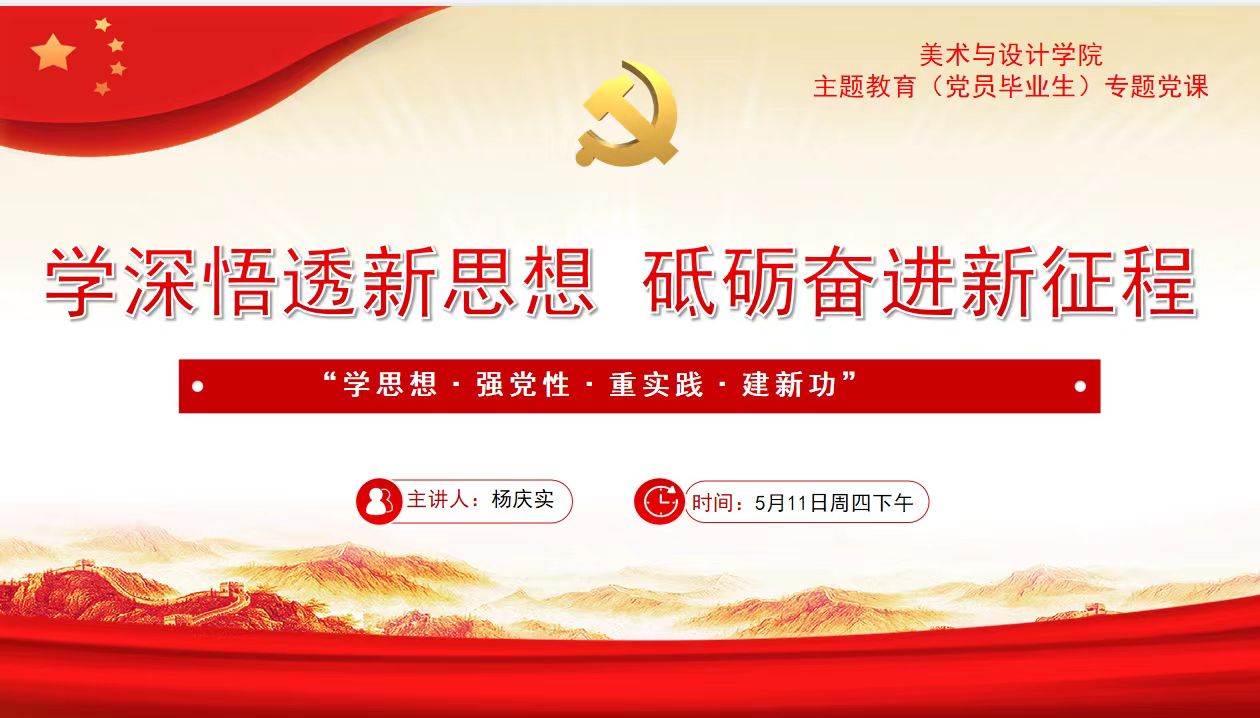 杨庆实首先讲述了在全党深入开展学习贯彻习近平新时代中国特色社会主义思想主题教育的重大意义、目标要求,并就学校、学院开展主题教育具体工作任务和学习内容等进行安排。结合学院工作和学生实际,杨庆实对毕业生党员提出几点要求:一是坚持爱国和爱党、爱社会主义高度统一,加强自身思想建设,继续加强理论学习,更加深刻地领悟“两个确立”的决定性意义;二是牢记党的宗旨,遵守党章党纪,注重加强自身作风建设,积极主动参与到学院“党建工作站”“五区”建设各项工作和主题教育实践活动中,切实为同学办实事、解难题;三是在未来各自岗位上,坚持以人民为中心的发展思想,切实提高自身执政本领,争做实干型、示范型、时代型新时期党员干部。