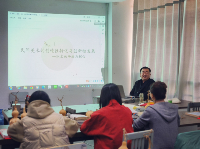 12月8日,四虎 党委副书记、院长、黄河学研究院执行院长张兆林副教授应邀为非遗工坊培训班学员作题为《民间美术的创造性转化与创新性发展——以木版年画为核心》的讲座,讲座在空中美术馆数字会议室举行。