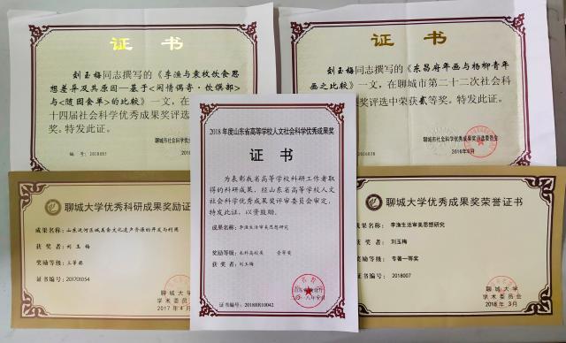 近年来,获校级科研奖励4项,主持有校级课题4项、山东省高等学校人文社会科学研究项1项、山东省艺术科学重点课题1项,参研山东省社科课题3项、教育部人文社会科学项目2项。在山东省教育厅主办的第二届高校美术与设计专业师生基本功比赛中荣获教师组书法篆刻类一等奖,多次荣获优秀指导教师奖;被评为四虎 第四届教学新星;荣获四虎 第二届青年教师教学竞赛一等奖、第二届全省高校青年教师教学竞赛三等奖;荣获“四虎 三八红旗手”荣誉称号;被学院推荐为山东高校十大师德标兵候选人。