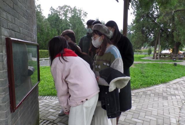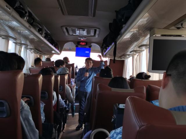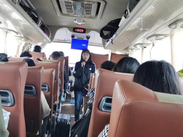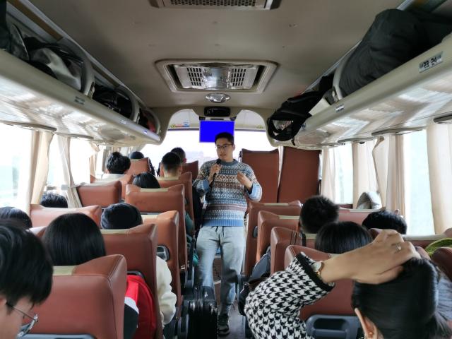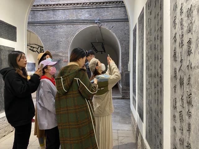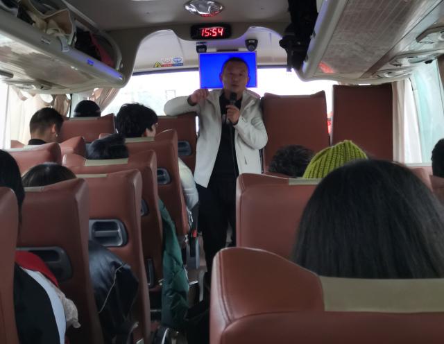 在大巴车上,“流动的课堂”气氛活跃,师生畅所欲言,交流收获,分享心得,从不同视角抒发自己的感想,有的针对一幅画谈感悟,有的就古建筑的保护与开发谈个人思路,有的对壁画临摹有了新的发现,有的就石刻碑文的鉴赏与拓印有了全新的理解,有的在石窟雕刻中深深的被工匠精神所折服……通过师生互动,合作交流,增强了学生的学习兴趣,充分调动了学生的主观能动性,使教学更加深刻直观,展现了流动课堂的精彩魅力。