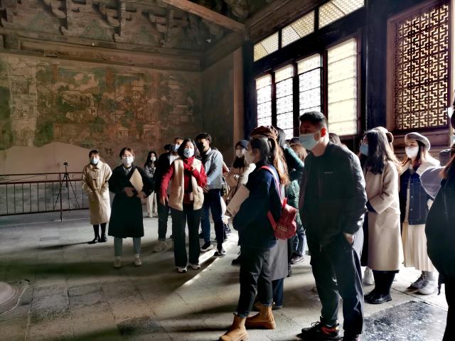 实践行程中,师生共同了观摩了山西大同美术馆的精品力作,和国内知名艺术家一起探“旺”“时代肖像——忻东旺艺术作品展”,和忻东旺先生作品零距离对话;感受了蔚为大观的云冈石窟;深入了解了隐藏在大山深处,民淳俗厚的李家山,重温了吴冠中老先生笔下的“世外桃源”,欣赏了黄河为幕、古镇为景的碛口古镇;品味了气韵生动惟妙传神的双林寺彩塑艺术;领略了我国现存最宏伟的,既继承中国古代美术的传统风格,又集历代壁画大成的永乐宫壁画;千唐志斋独具魅力的碑刻艺术;体验了“见树不见村,进村不见房,闻声不见人”的地坑院;被古建专家称为古村落保护的杰出典范的上庄古村和砥洎城的“铜墙铁壁”等。