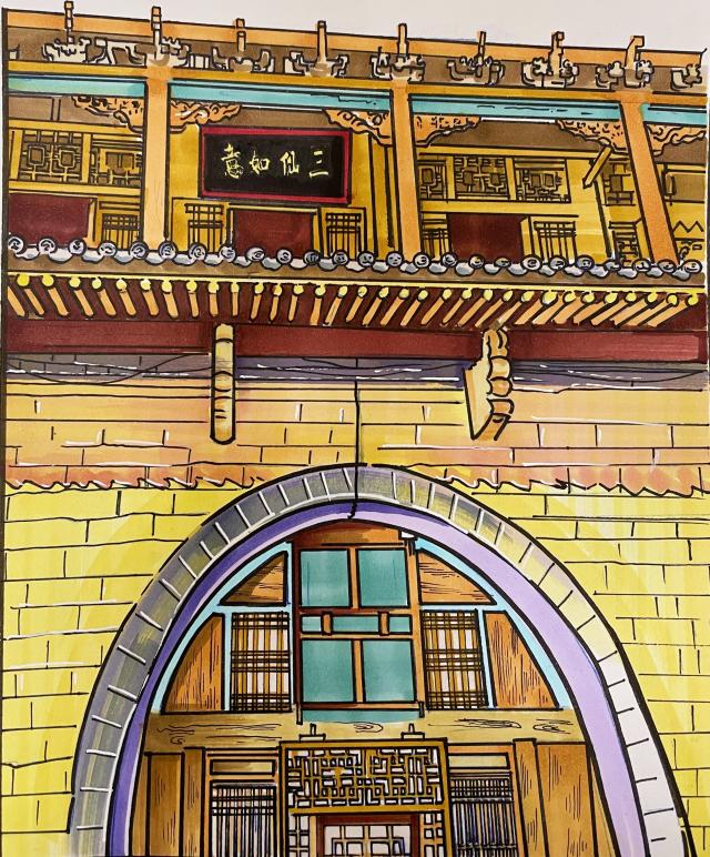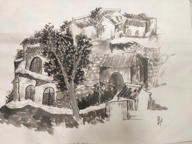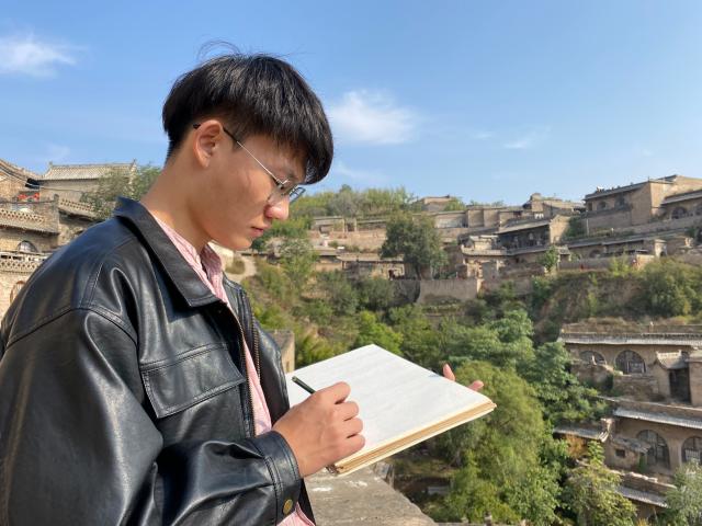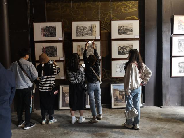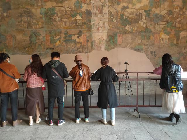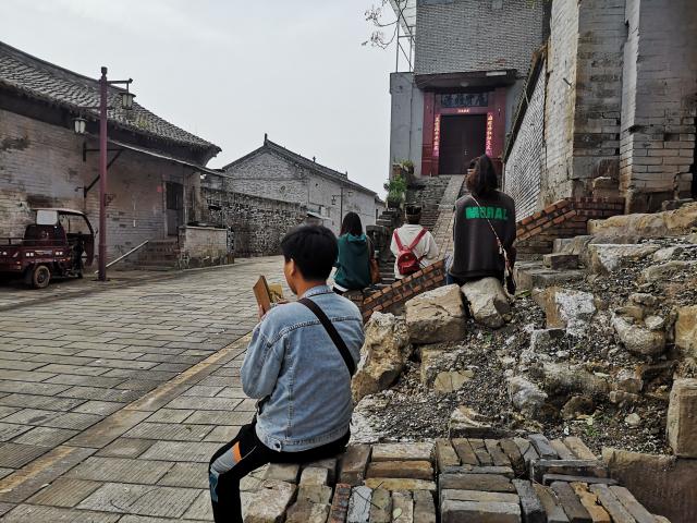 在绿水青山间,在小河流水旁,在农家院落前,在经典壁画下,师生用画笔表现着祖国大地的一枝一叶,一砖一瓦……面向自然,汲取灵感,观察、感受和记录整个行程中的所见所闻、所思所想,真真切切的做到了“本不离手”。尤其在碛口古镇里邀请头戴白毛巾、身穿羊皮袄、手持铜烟杆的老大爷做模特写生,从不同角度观察模特形体变化,与模特进行直接交流,为各位同学对人物刻画提供了直接的素材。在永乐宫通过现场临摹壁画,分析原作用笔、用色、造型等特点,从学习角度对艺术经典进行形式上的把握,从而加强技法的提升。