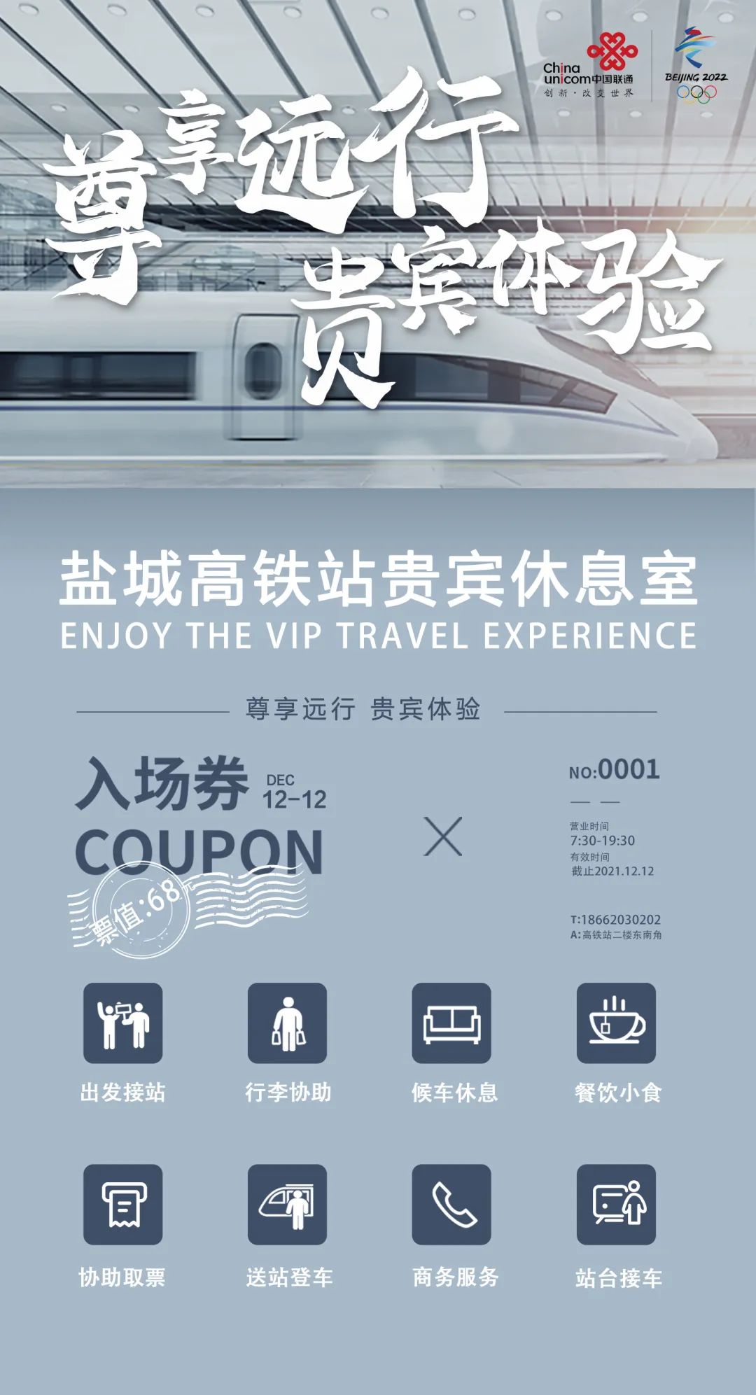 《盐城高铁站贵宾休息室入场券》