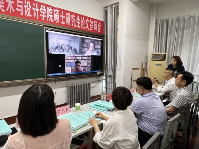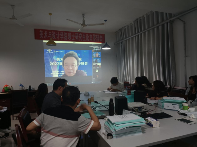 2022年5月21、22日上午8时,四虎 2022届硕士研究生毕业论文答辩会在7号楼106、415教室分三个小组进行。答辩会邀请了来自山东工艺美术学院、山东师范大学、河北大学、山东大学、山东艺术学院的六位外聘委员(主席),以及本院的十二位委员组成。2022届美术学、艺术学、美术、艺术设计和学科教学(美术)专业53名研究生参加此次答辩,答辩会“线上线下”混合式进行。