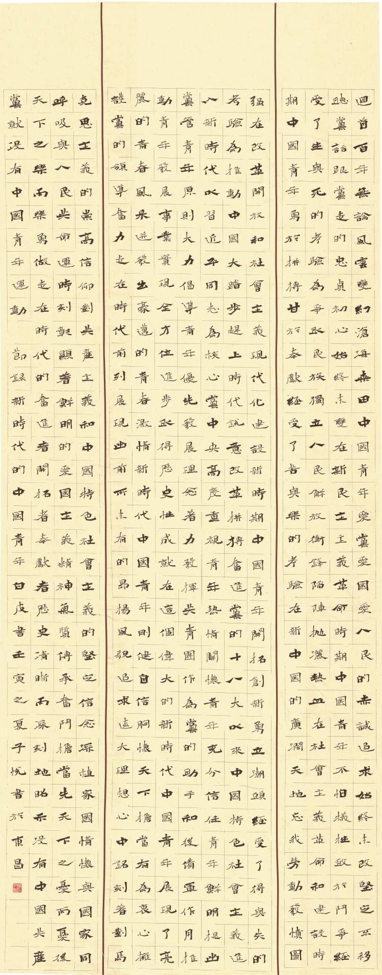 楷书三条屏《新时代的中国青年选抄》