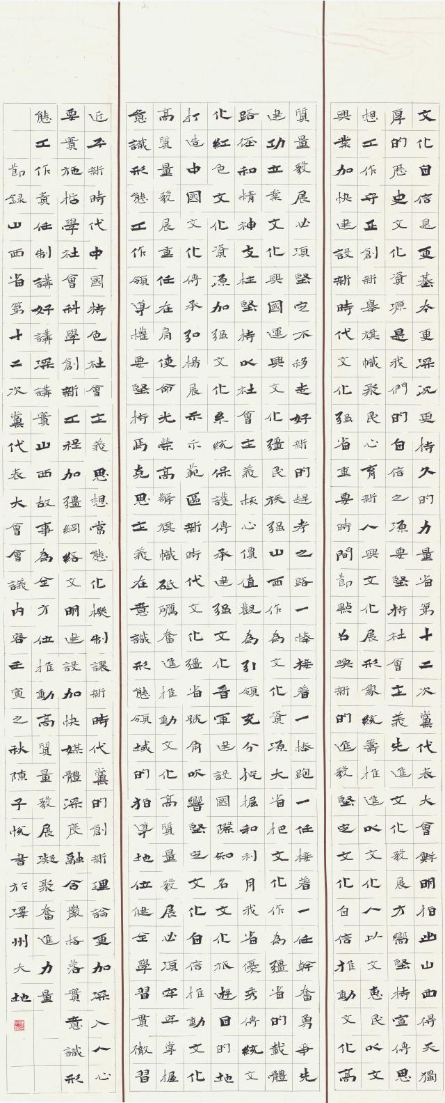 楷书三条屏《喜迎二十大选抄》