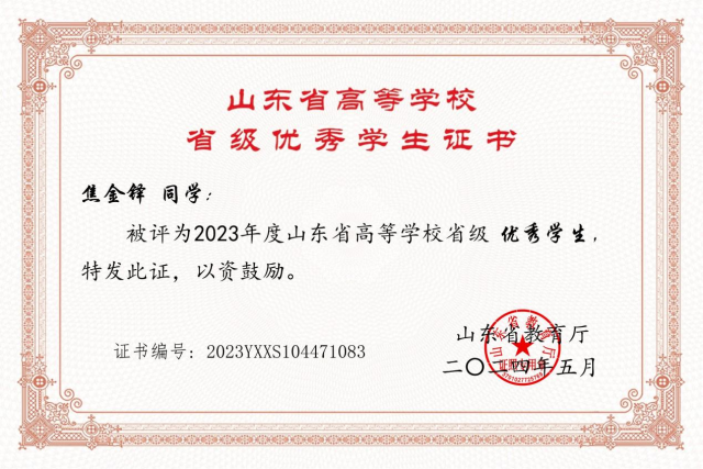2023年12月荣获四虎 研究生学业奖学金二等奖;