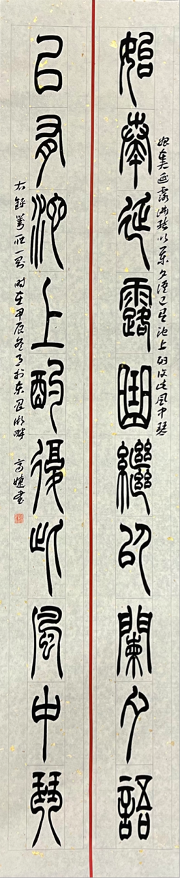 2024年1月作品《垂手扪心联》荣获山东省第七届大学生艺术展演书法和篆刻乙组二等奖;