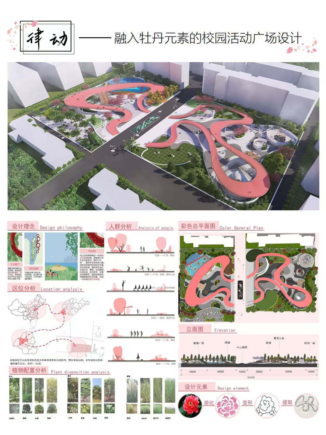 《“律动”融入牡丹元素的校园活动广场设计》其一