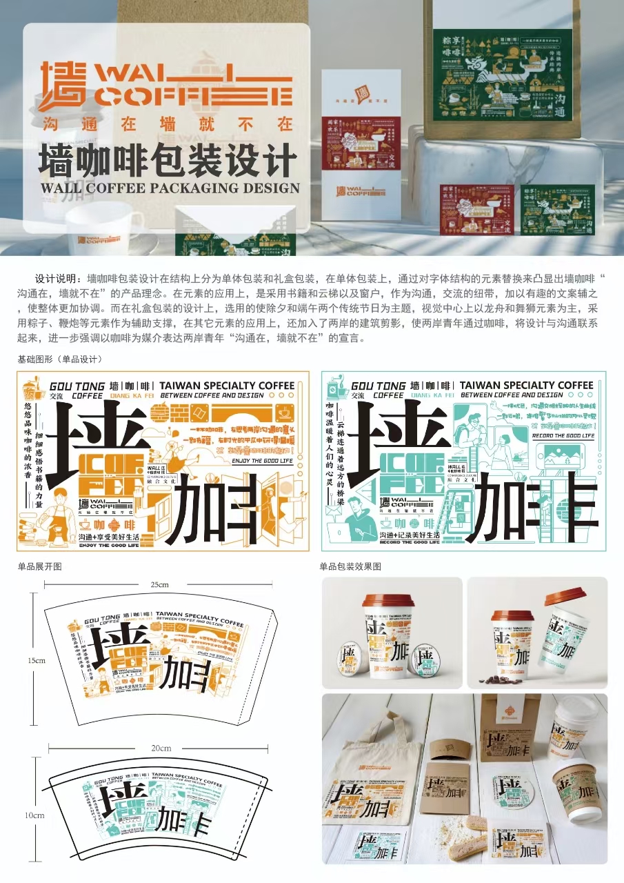 2023年5月作品《墙咖啡包装设计》荣获2023年第八届“两岸新锐设计竞赛・华灿奖”全国赛三等奖;