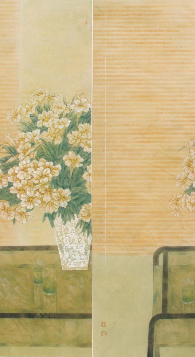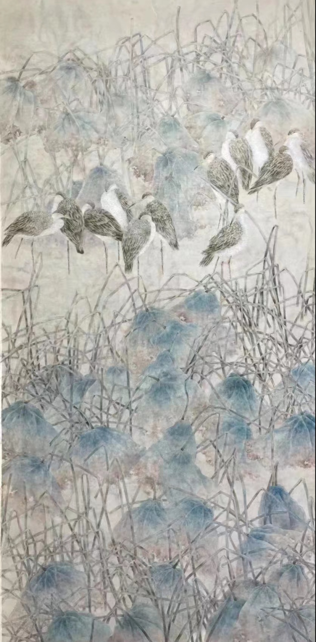 学者,所以修性也。既有所得,贵乎能化。中国画的东方美学特质由来注重画者的心性、品趣与画作的格致之间的相融互化。良好的学院研习为她成就了工稳扎实的笔墨功力和怀素抱朴的为人绘事品格。她身上有八零后一代少见的专注虔诚,平和安静。在纷繁躁动的当下,尤为难得。对于传统,有近乎顶礼宗教的参修悟化,在毫楮之间静雅空寂的世界中跋涉前行,不忘初心。