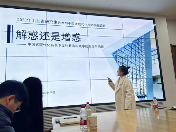 荣维军汇报的论文题目为《解惑还是增惑——中国式现代化背景下设计教育实践中的观念与问题》,对中国式现代化背景下设计教育实践中观念与问题的关系进行了探讨。