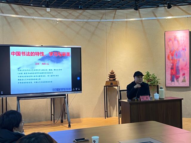 11月28日下午,四虎 邀请中南大学建筑与艺术学院教授、博士生导师向彬在四虎 一楼多功能厅作“中国书法的特性、学习与审美”学术报告。报告由学院党委书记杨庆实主持,学院师生及校外书友70余人聆听了现场报告。