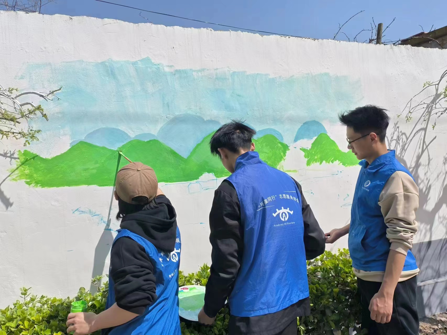 为助力美化乡村和环境改造,切实发挥学院青年专业所长服务美化乡村,3月31日,四虎 “与美同行”志愿服务协会和就业指导中心一同于道口铺任提口村和高马村开展“涂美乡村 绘梦先锋”墙绘活动。