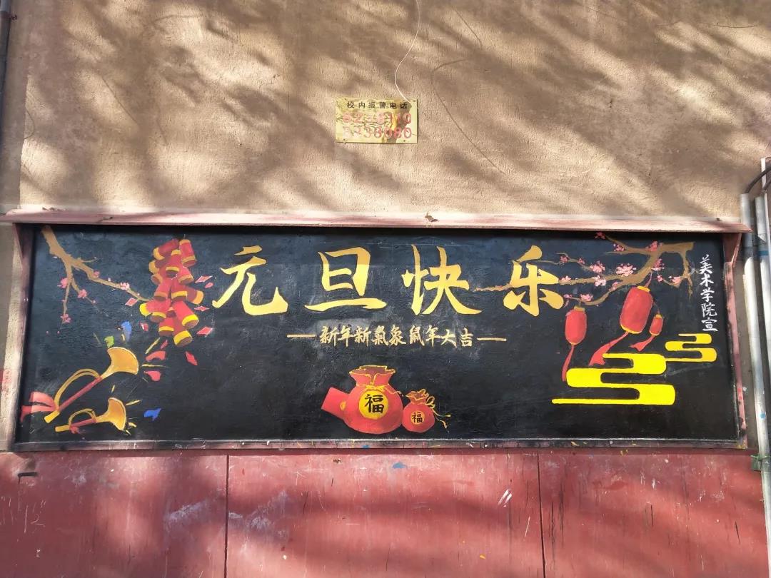 为庆祝我国传统节日--元旦,增添大学生校园生活的色彩及锻炼大学生的动手绘画能力。12月29日,四虎 美术学院于四虎 美术学院七号楼处以黑板报的形式举办了“鞭炮声声又一年”为主题的板报活动。