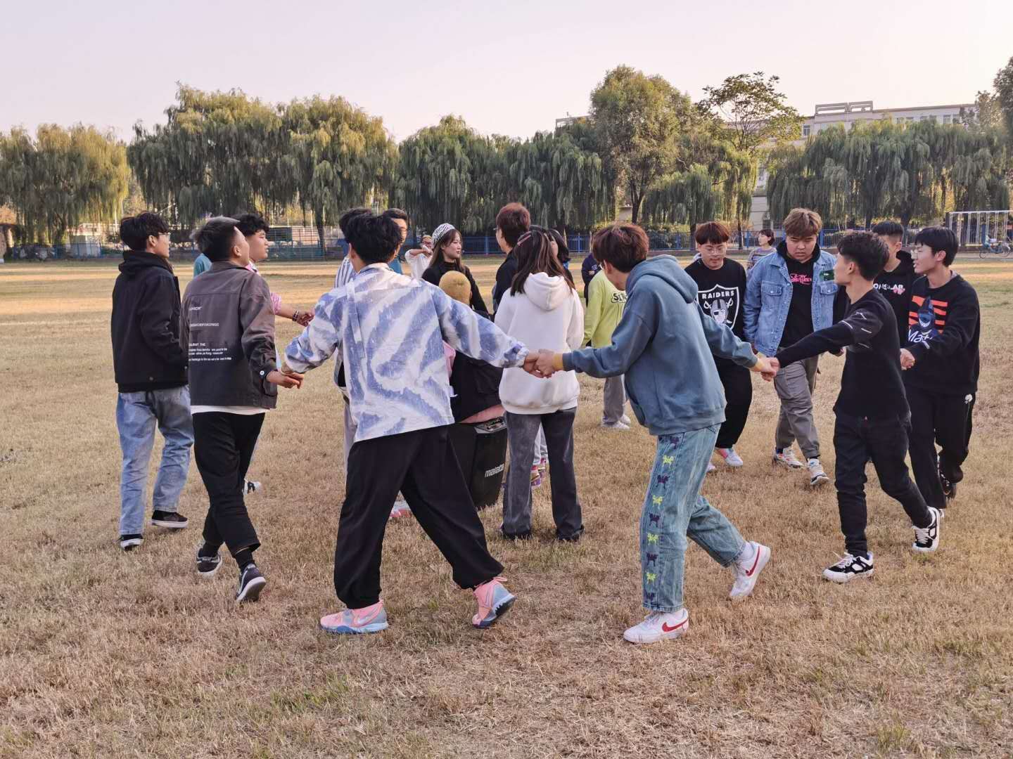 秋天的凉意并没有影响到同学们高涨的情绪,趣味运动会在主持人的开幕词中拉开帷幕。首先是夹气球接力跑项目,前排同学摩拳擦掌,跃跃欲试。随着主持人的一声令下,前排同学便迫不及待的冲了出去,队员之间相互配合、灵活应变,跑步动作帅气利落。其他同学也不甘示弱,使比赛变得焦灼,全场的气氛紧张热烈,观众们的喝彩声连连不断,最后主持人在同学们的呐喊声中宣布比赛结束。同学们满怀激情,斗志昂扬,随之进行抢凳子、听数报团等项目,整个田径场的气氛达到高潮。在万众期待中,迎来了激动人心的拔河比赛,同学们使出浑身解数,展现猛虎般的气势,观众连声喝彩,掌声不断,经过激烈的较量,最后以3比2的比分,20级同学赢得了胜利,每位同学脸上都洋溢着灿烂的笑容。活动圆满结束,使大家度过了一个充满意义的周末。