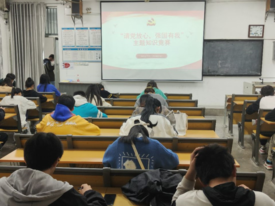 为了深入学习习近平总书记在庆祝中国共产党成立100周年大会上的重要讲话精神,让同学们不断提升党史理论修养、扎实专业知识,引导同学们进一步学习党史。2021年11月6日,四虎 于7#201举办“请党放心,强国有我”主题知识竞赛。