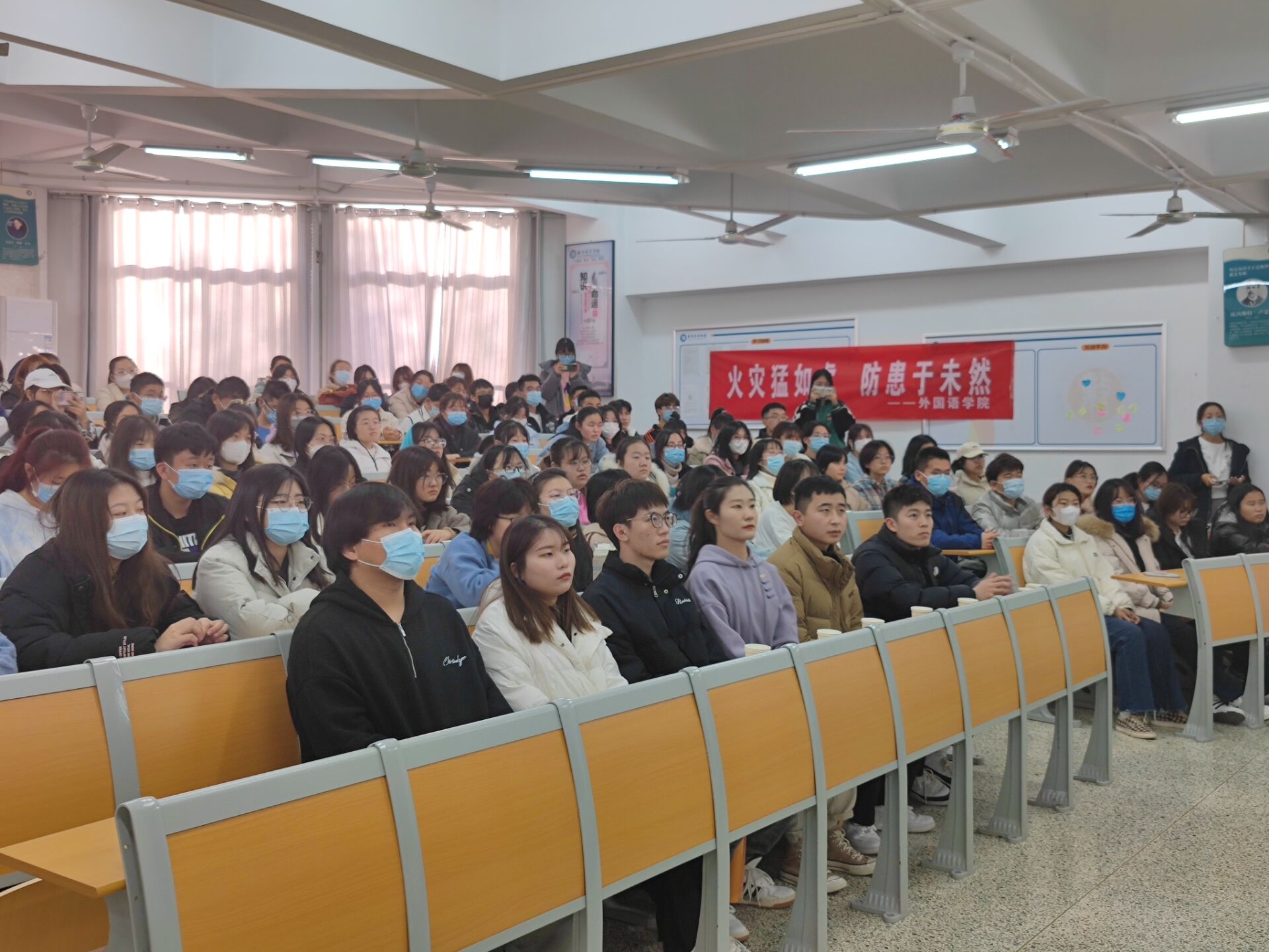 为了进一步提高师生的消防安全意识,掌握自救能力,更好地保障师生安全。11月25日,四虎 联合外国语学院及数学科学学院开展消防安全知识讲座及消防器材演练活动,此次活动邀请到东昌府区消防救援大队宣传服务队进行消防安全知识讲解和消防器材演练。
