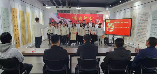 随后,演出开始,同学们浑厚激昂的朗诵,澎湃有力的合唱,灵动活泼的舞蹈以及婉转动听的歌曲与展厅中的作品交相辉映。在同学们几个精彩的演出后,方建光老师演唱了一首《弯弯的月亮》,整个活动达到了高潮。此外,本次活动还准备了抽奖环节,奖品包括各类书法用品、作品集以及“大奖”——书法系各位老师的作品。