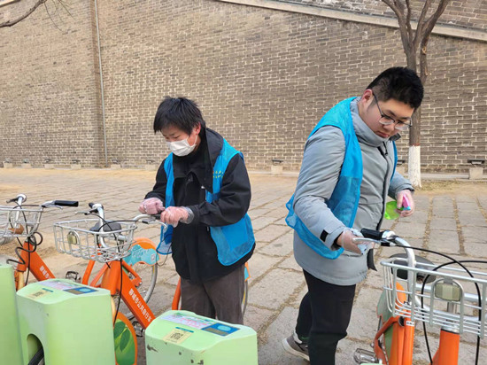 志愿者到达东昌湖公园后,将街道路旁的自行车、电动车按要求摆放在规定的位置,并及时清理路人扔掉的烟头、塑料袋等垃圾,将垃圾专门分类进行处理。志愿者们对花架和街道进行了认真清扫,也将平时难以注意到的死角以及花架底部也进行了清理。随后,将目标转移至公共器械,志愿者手拿喷壶、抹布等清扫工具,对公园中的共享单车、扶手等开展大扫除。志愿者们积极主动,干劲十足,不放过任何一个卫生死角。经过大家的齐心协力,社区卫生环境得到极大改善,社区面貌也焕然一新。志愿者们用辛勤的劳动换来了干净整洁的环境,还居民群众一个干净舒适的日常活动区域,美化了社区的卫生环境,同时向社区居民宣传爱护公共卫生的意识。