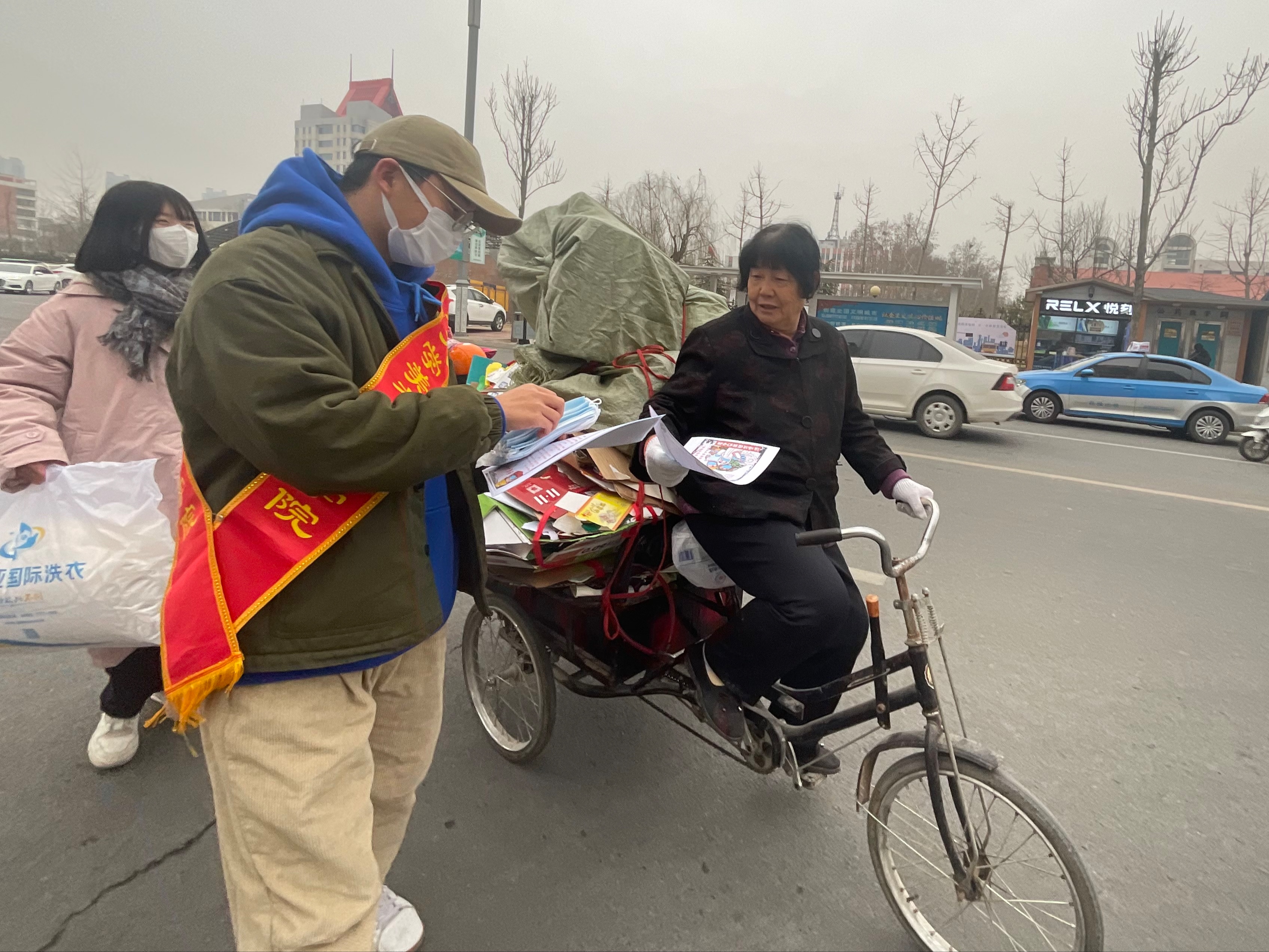 活动前期,志愿者们添置防控知识清单、酒精喷雾、医用外科口罩等物品。为广大市民普及防疫知识,并按照工作安排每个志愿者都积极参与,用酒精喷雾为共享自行车,公交站台消毒并擦拭,为群众提供更好的使用体验,活动成员在寒假期间加入社区疫情防控工作为国家疫情防控工作出力,报名参加社区组织的防疫志愿者等服务工作。随后,为环卫工人,交通警察提供医用外科口罩,为公交站台的亲自带上防疫口罩,防疫口罩给各位市民提供更安全的防疫措施广大市民积极参与相应。实践活动依次进行,在新年来临之际,向广大市民致以祝福,助力国家疫情防控工作,给人民群众创造一个健康的生活环境。作为大学生,我们应该懂得“滴水之恩,涌泉相报”并将其付诸于实践,持续四个小时的活动志愿者们在欢声笑语与广大市民的积极参与中。活动接近尾声,“爱心易路行”服务团队合影留念。
