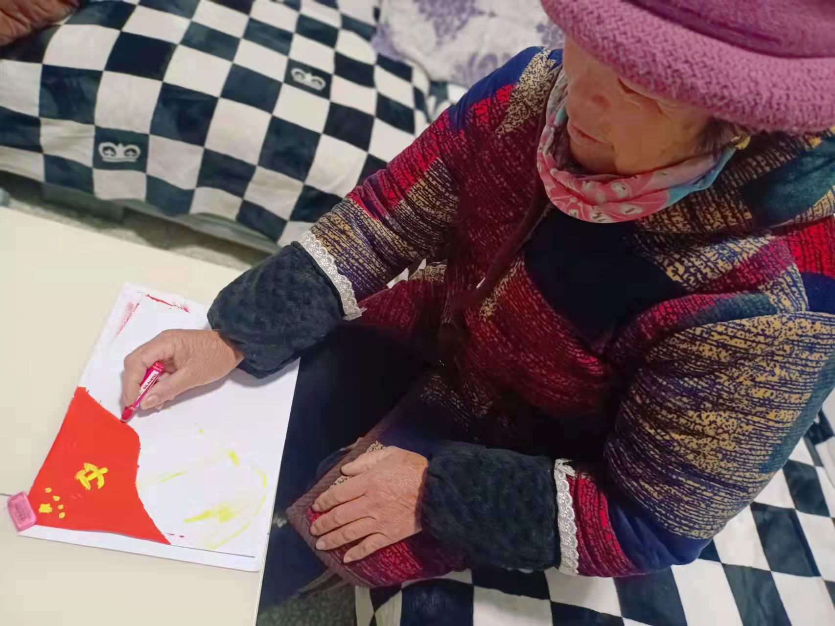 学百年党史,守初心情怀。本次活动以返家乡的形式展开实践活动。志愿者们以专业技能为依托,以绘画与文字相结合的形式展开实践活动。活动开始前,志愿者到达现场并准备好一切工具以及疫情防控相关工作。随后,志愿者和家乡所在社区成员一起进行爱党绘画填色。随着活动的慢慢进行,志愿者们声情并茂的讲解如何绘画,引人入胜、令人思绪万千,大家其乐融融的绘制着一幅一幅作品。在填色过程中,志愿者同社区成员一起重拾对中国共产党的回忆,正确理解党的方针政策,了解党的初心和使命。活动的最后,一幅幅精美的作品浮现在眼前,让社区的人们在心中掀起党史学习教育的热潮,增强民族自尊心、自信心,并获得心灵的升华,志愿者们也提高自己的觉悟和意识,唤醒红色基因、坚定理想信念。