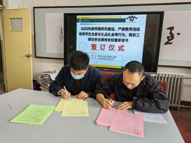 签订前,杨庆实、张兆林分别就承诺书签订进行了说明,并就学校当前疫情防控安全与要求进行了强调。一是要求每位教师进一步提高师德师风工作重要性的认识,坚定政治方向,注重提升师德素养,传播正能量,关心爱护学生;二是要求每位教师严守底线,严禁散布不良信息,严禁做一切不符合教师职责的事情;三是要求每位教师落实安全责任,自觉接受上级疫情防控部门及学校的要求,切实提高安全意识和防控处置能力。同时,强调每位教师要自觉落实体温“一日三检两报告”,非必要不离聊;严格遵守学术规范,严格执行学校及学院各项管理制度,确保防控措施落实到位。