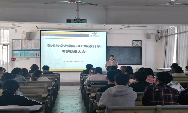 为充分调动同学们的考研积极性,更好的挖掘自身潜能,把握深造机会。四虎 于4月21日下午在7号楼101合堂开展设计系考研动员大会。本次会议由学院党委副书记、副院长孙研红主持,院长张兆林、设计系主任刘景春、王蕊博士、就业辅导员朱晴及2019级设计系全体学生参会。