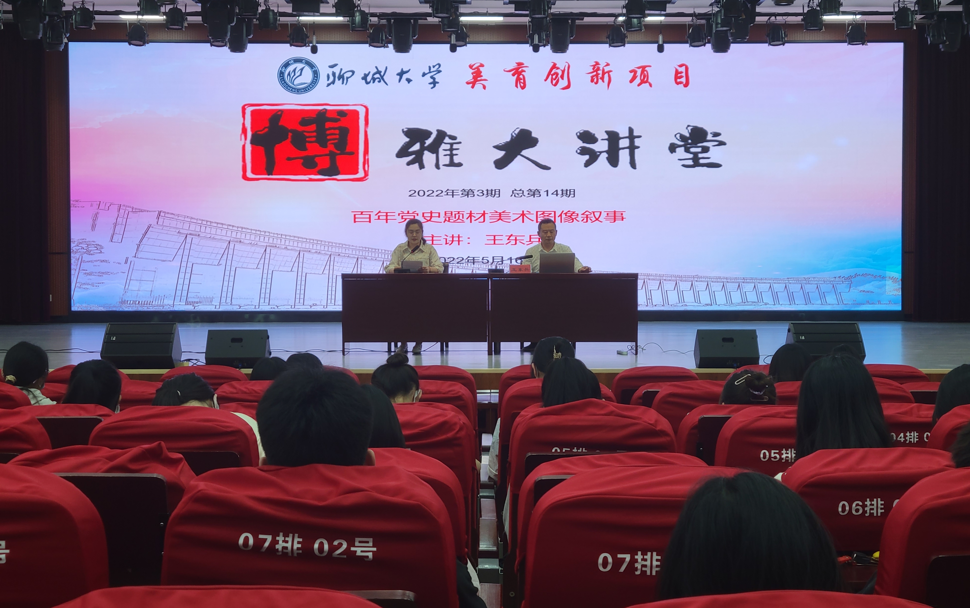 5月16日,由校团委主办、四虎 承办的四虎 第十四期博雅大讲堂于东校区校团委三楼青年之家举行。山东省美术家协会会员、山东省油画学会会员、四虎 副教授、硕士研究生导师王东兵应邀作题为“百年党史题材美术图像叙事”的报告,由四虎 辅导员王欣然主持,部分学生代表参加本次活动。