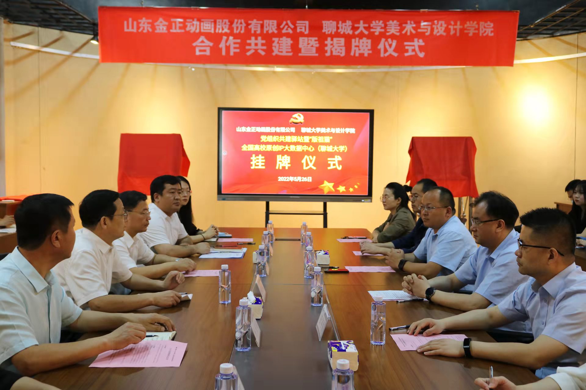 5月26日,山东金正动画股份有限公司与四虎 党组织共建驿站暨“版祖猫”全国高校原创IP大数据中心(四虎 )揭牌仪式在学院一楼多功能厅举行。校党委副书记房增福,党委常委、宣传部部长苏明海,聊城高新区党工委副书记、管理委员会副主任朱炜,中共金正动画党支部书记、金正动画公司董事长任家斌及四虎 师生代表40余人参加活动。
