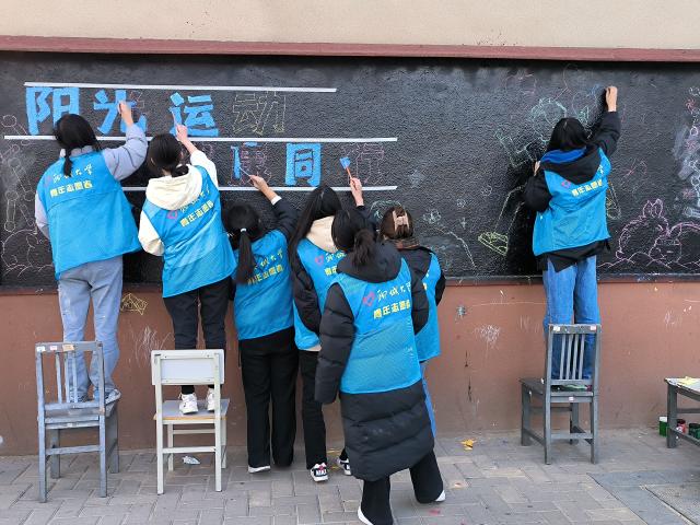为响应学校及学院相关号召,进一步倡导同学们积极运动来保持健康体魄,2月23日下午,四虎 “与美同行”志愿服务协会于四虎 西校区星月广场西侧黑板举办“阳光运动 健康同行”主题板报绘制活动。