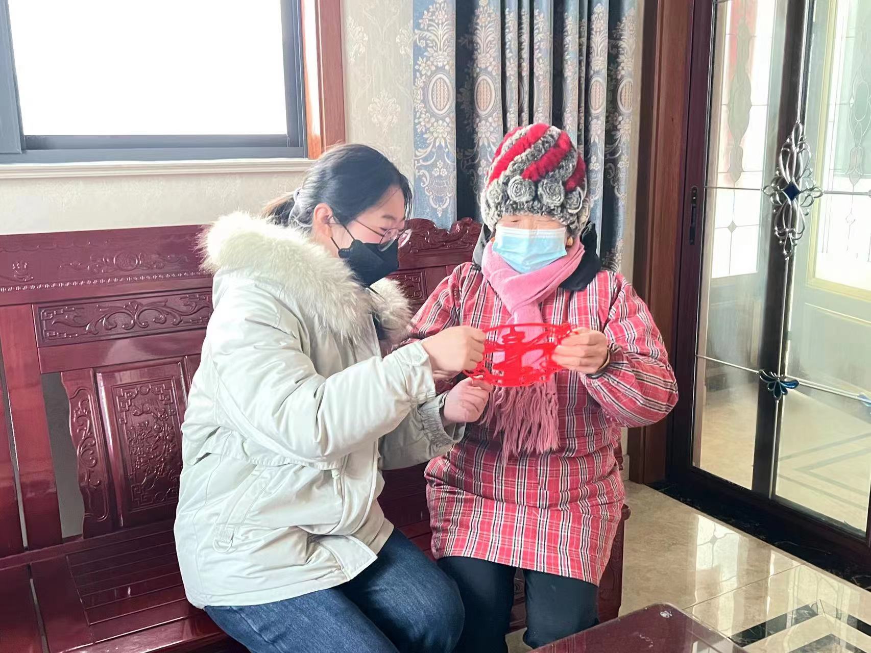 剪窗花是中华民族传统文化的重要元素,不仅能勾勒中国共产党波澜壮阔的光辉历程,而且红色作为热爱的底色,续写对党的忠诚。小组成员查阅相关资料,并做好充分的准备,左手红纸,右手剪刀,以波澜壮阔的党史为题材进行剪纸创作,纸花纷飞间,一幅幅风格独特的窗花剪纸在大家灵巧的手中逐渐成型,展现出十足的创意。创作完成后,活动负责人将精心制作的窗花作品依次分发给老年人,并为他们讲解这些窗花的设计理念,让老年人近距离感受中华传统文化。他们认真欣赏着精心设计的作品,深深体会到党波澜壮阔的不凡征程,中国共产党将带领着中华民族不断朝着社会主义现代化强国迈进。