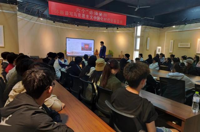 为宣传六个“必须坚持”深入贯彻党的二十大精神,4月1日,四虎 邀请四虎 青年讲师团刘新宇于西校区7号楼一楼多功能厅开展“六个“必须坚持”不断谱写马克思主义中国化时代化新篇章”——党的二十大精神宣讲会。