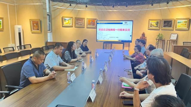 学院党委书记杨庆实、副院长史秀娜与教师代表在学院多功能厅庄汉生教授一行进行座谈,向来访客人介绍了学院总体架构、专业特色及发展方向。双方就高等美术教育、艺术创作等方面进行了交流。