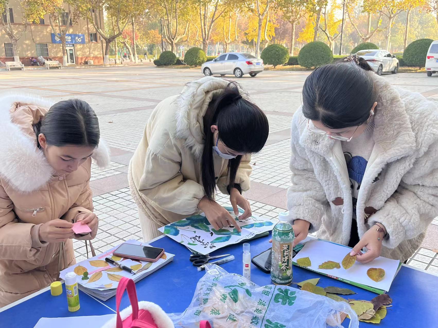 适逢深秋,落叶漫天,为培养同学们德智体美劳全面发展,11月19日四虎 于西校区五四广场举办“落叶成画绘美景 同心喜迎新时代”手工制作活动。