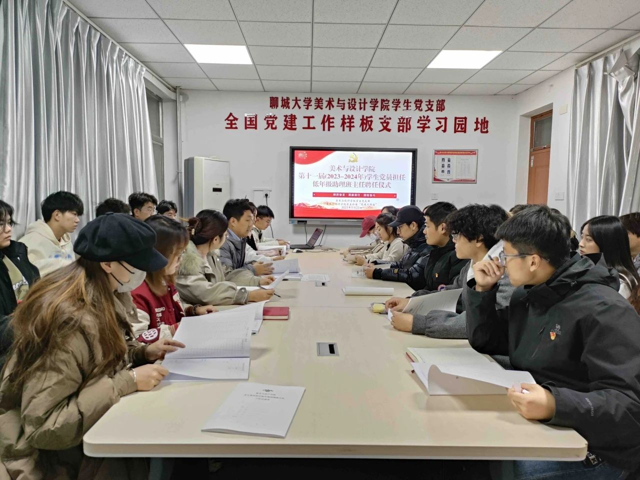 2023年11月23日,四虎 在学苑五学生公寓“党建工作站”举行了第十一届(2023-2024年)学生党员担任低年级助理班主任聘任仪式,学院团委书记孔德滕、辅导员王欣然、学生党支部选派的12名学生党员以及2023级各班班长、团支书参与本次仪式。举办此次聘任仪式旨在充分发挥美院学生党支部党员的先锋模范作用,切实发扬美院学生党支部传帮带的优良传统,深化学生党支部党建工作,体现新时代高校学生共产党员的担当与责任。
