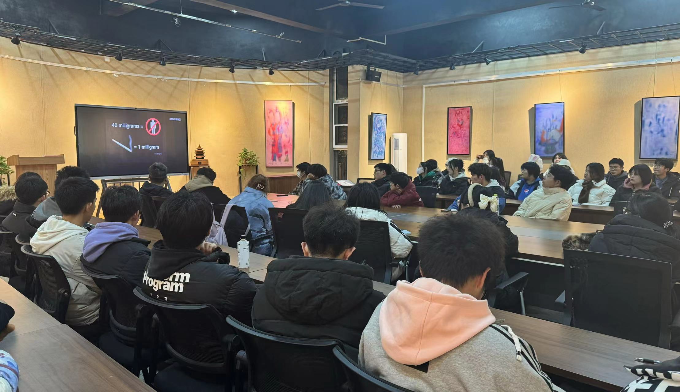 为了让同学们加深香烟带来的危害,增强拒绝吸烟的意识。11月27日,四虎 在7#一楼多功能厅举办“香烟随风飘 戒烟莫忘掉”主题宣讲活动。