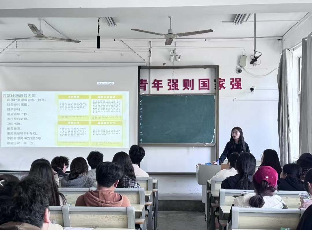 为进一步提升2024届毕业生就业质量,引导青年学生投身基层建设和乡村振兴,到祖国最需要的地方建功立业,4月16日,四虎 团委组织2024年大学生志愿服务西部计划政策宣讲会。邀请2021届毕业生、西部计划志愿者李新现场分享经历并答疑解惑,学院2024届毕业生参加本次宣讲。