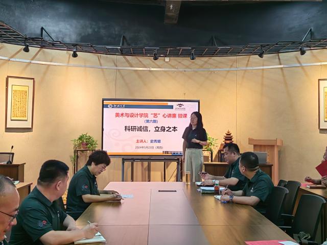5月23日下午,四虎 于7号楼113多功能厅开展第六期“‘艺’心讲廉”微课暨 “科研诚信月”主题活动,四虎 副院长、美术与书法教研党支部书记史秀娜担任主讲人,全体教工参会学习。