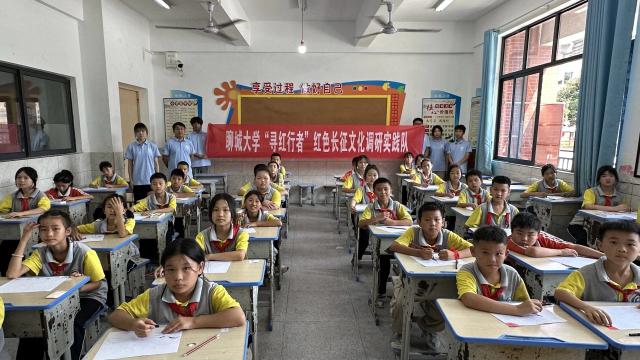 2024年7月27日,四虎 “寻红行者”红色长征文化调研实践队在绥阳县虹桥小学持续开展美育社会实践活动。