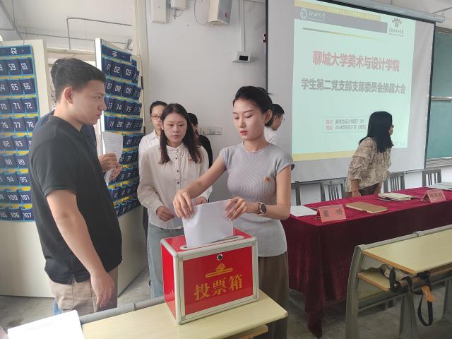 大会在庄严的国歌声中拉开帷幕,美术与设计学院学生第二党支部换届选举大会开始进行。大会伊始,由2023级研究生孙艺代表上届支委会向党员大会报告三年来党支部的主要工作情况,期间回顾了党支部在思想建设、组织建设、作风建设等方面取得的显著成绩。