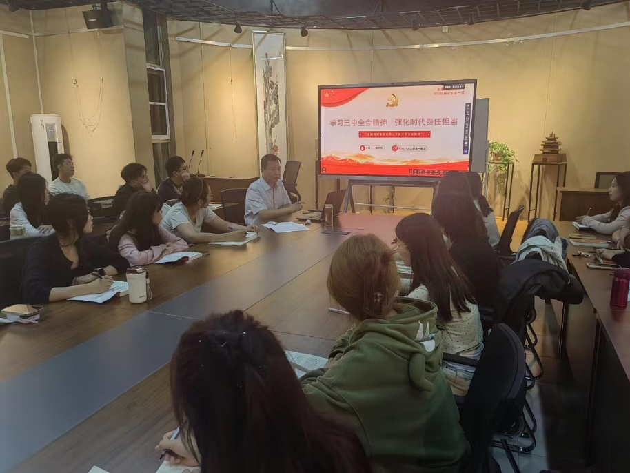 本次党课主要围绕党的历届三中全会精神解读、党的二十届三中全会精神及新时代大学生应具有的担当和使命三方面内容展开讲解。党的二十届三中全会这次全会是在以中国式现代化全面推进强国建设、民族复兴伟业的关键时期举行的一次十分重要的会议,杨庆实指出,要深刻学习领会全会的核心要义和精神实质,把思想和行动统一到党的二十届三中全会精神上来。