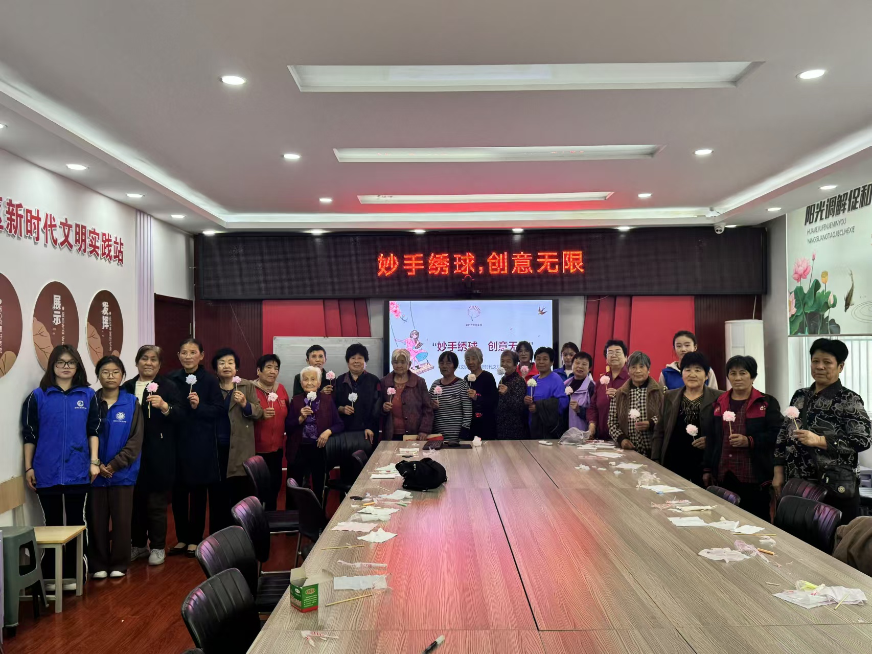为丰富老人们的精神文化生活,推广创意手工,营造积极有趣的艺术氛围,10月17日,四虎 “与美同行”志愿服务协会于文锦苑社区举办“妙手绣球,创意无限”主题系列活动。