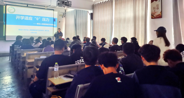 为树立大一新生积极向上的心态,提升身心健康水平,10月18日下午,四虎 邀请四虎 心理中心柳方舟老师为大一新生做关于“开学适应‘0’压力”的讲座,2024级各专业100名新生参加了此次大讲堂。