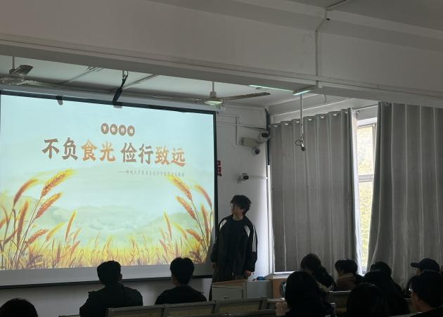 为了增强同学们对劳动成果的尊重和珍惜,使同学们能够深刻地理解粮食生产的艰辛和资源有限性的现实,10月26日,四虎 在7#301开展了以”不负食光 俭行致远”为主题的宣讲活动。