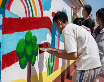 出发前,同学们精心设计了墙绘的图案,从学校标志性建筑到社区文明宣传标语,无不体现了大家的巧思与对四虎 未来的展望。到达明德社区后,同学们立刻投入到墙绘的创作中,结合社区实际需求,在不同的墙体进行分工彩绘,并且开始基本的调色和划线。现场气氛热烈,在同学们一天的努力下,墙面上绘出许许多多富有生机活力的图案。参与此次墙绘实践活动后,同学们纷纷表示:“这次活动既锻炼了我们分工合作、集体协作的能力,又让我们有机会将所学知识运用于实践中,感觉十分有意义。”