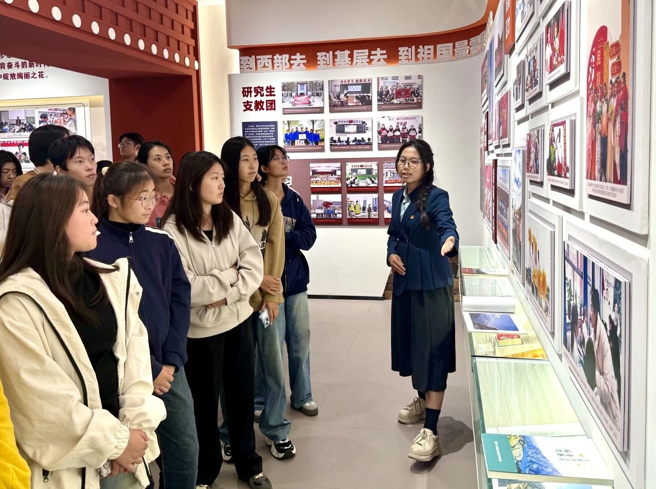 在西部计划展览馆中,讲解员围绕西部计划五个单元展区生动讲述四虎 学子响应号召、投身西部的奋斗故事,将扎根西部、无私奉献的精神传递给同学们,展现出历代聊大人崇高的志愿服务精神与不怕吃苦、敢于担当的青春主旋律,激励同学们担当时代使命、投身祖国建设。