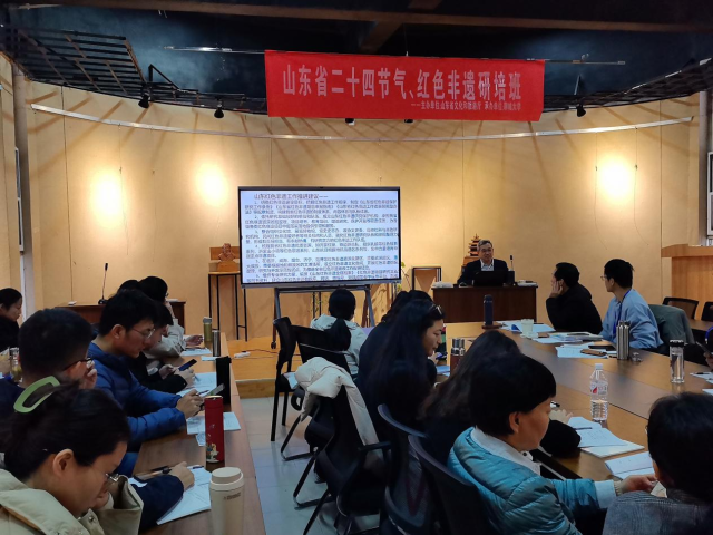 11月22日上午,我们学院有幸邀请到了山东理工大学文学与新闻传播学院的党委书记李义勇教授,他在我们学院一楼的多功能厅举办了一场主题为《山东省红色非物质文化遗产(非遗)调查与研究》的学术讲座。这场讲座由我们学院的刘昆副教授担任主持人,吸引了来自山东省二十四节气、红色非遗培训班的40余名学员参加。