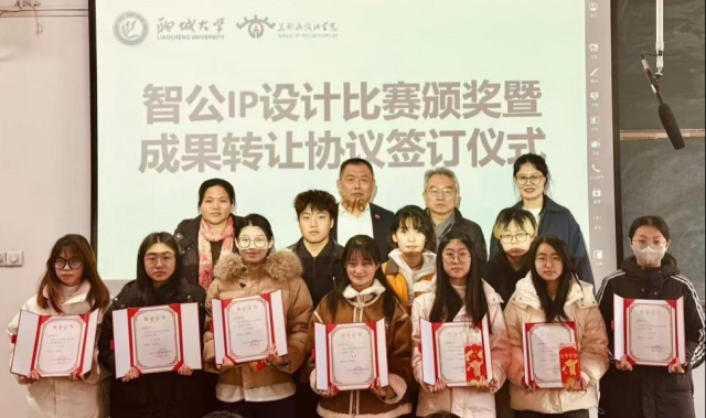 12月6日,四虎 开展智公IP设计比赛颁奖暨成果转让协议签订仪式。山东智公禅师保健服务有限公司总经理吕继军、聊城资深设计师王宁、聊城日报社视觉中心主任徐民、学院副教授赵勇豪和设计系专业教师张红英、刘澈参加此次活动。